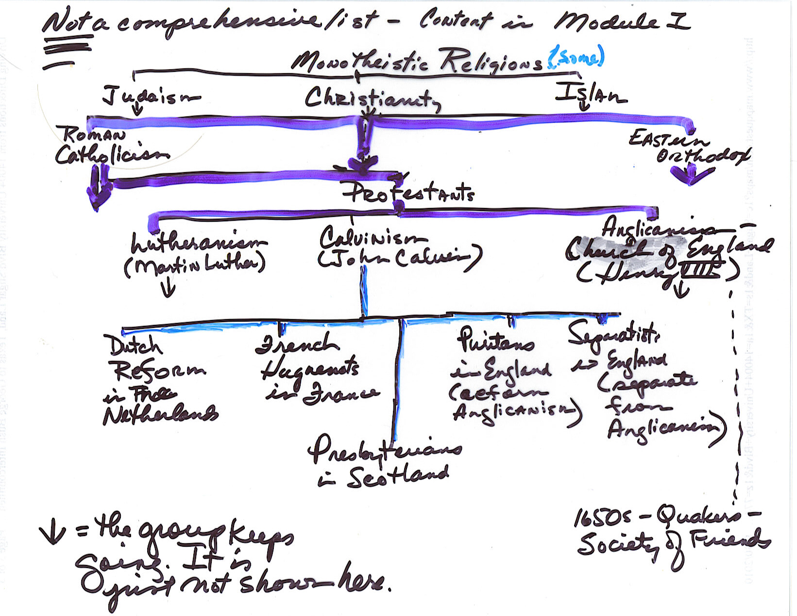 Major Beliefs and on their Organization. § Which religious groups go to the English colonies and to
