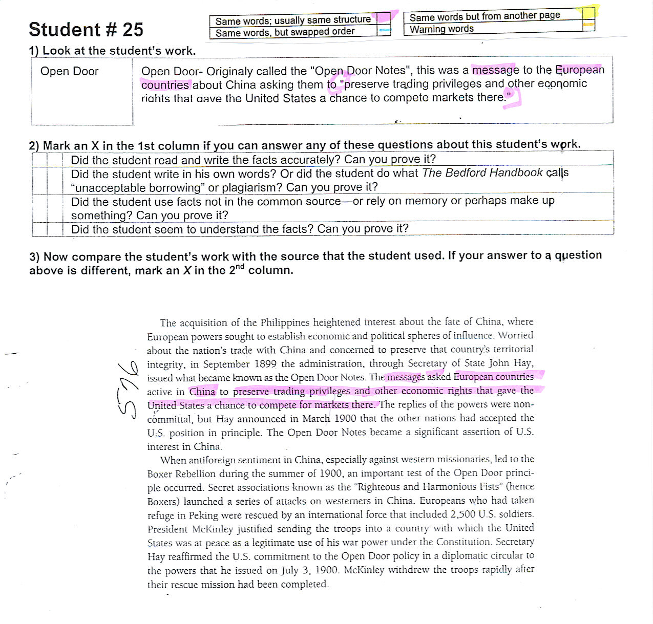 plagiarism from another source or “half-copy” plagiarism from one of the